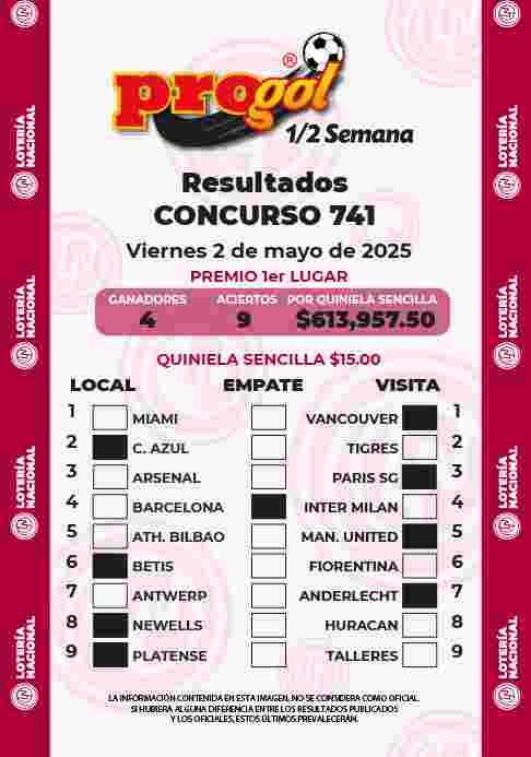 Jugada ganadora del Progol media Semana del Viernes 11 de Abril de 2025