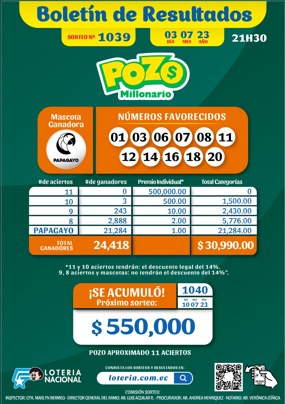Resultados de La Millonaria 39