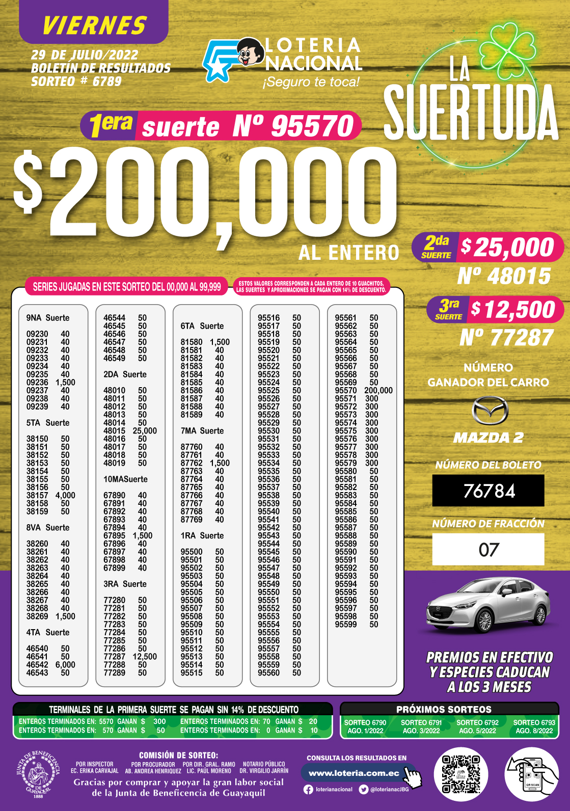 Loteria Nacional del 29/07/2022