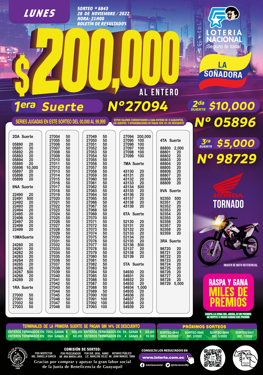 Resultados de Loteria Nacional 6843