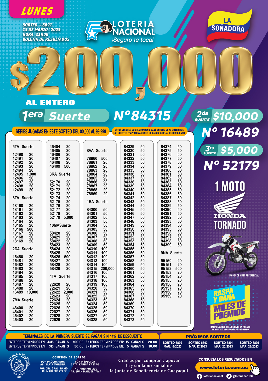 Loteria Nacional del 13/03/2023