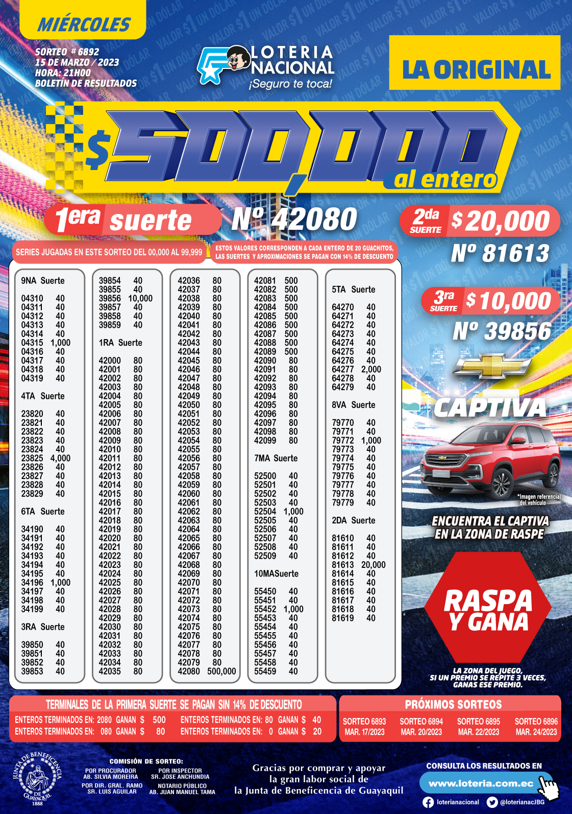 Loteria Nacional 6892 -