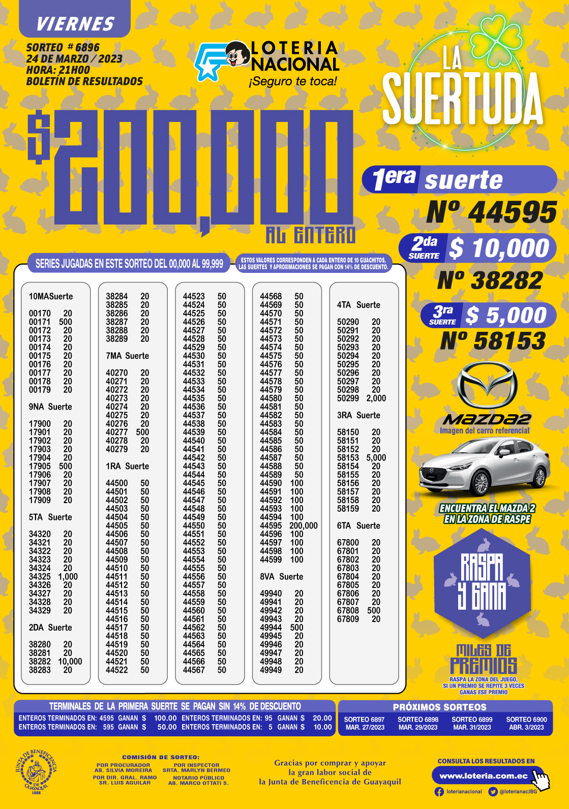 Resultados de Loteria Nacional 6896