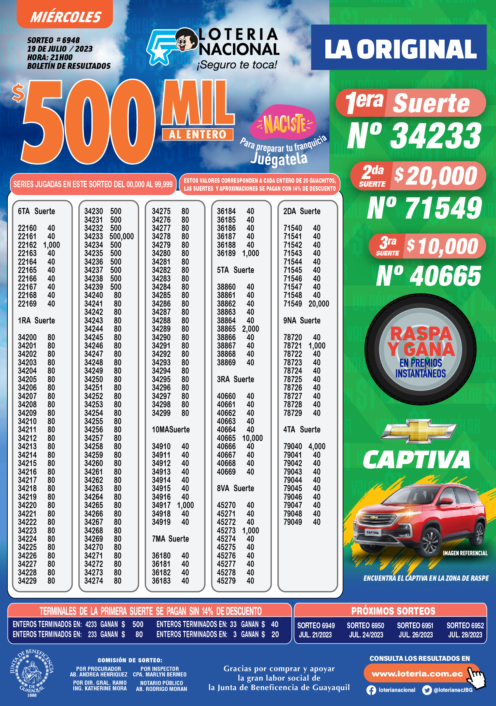 Loteria Nacional del 19/07/2023