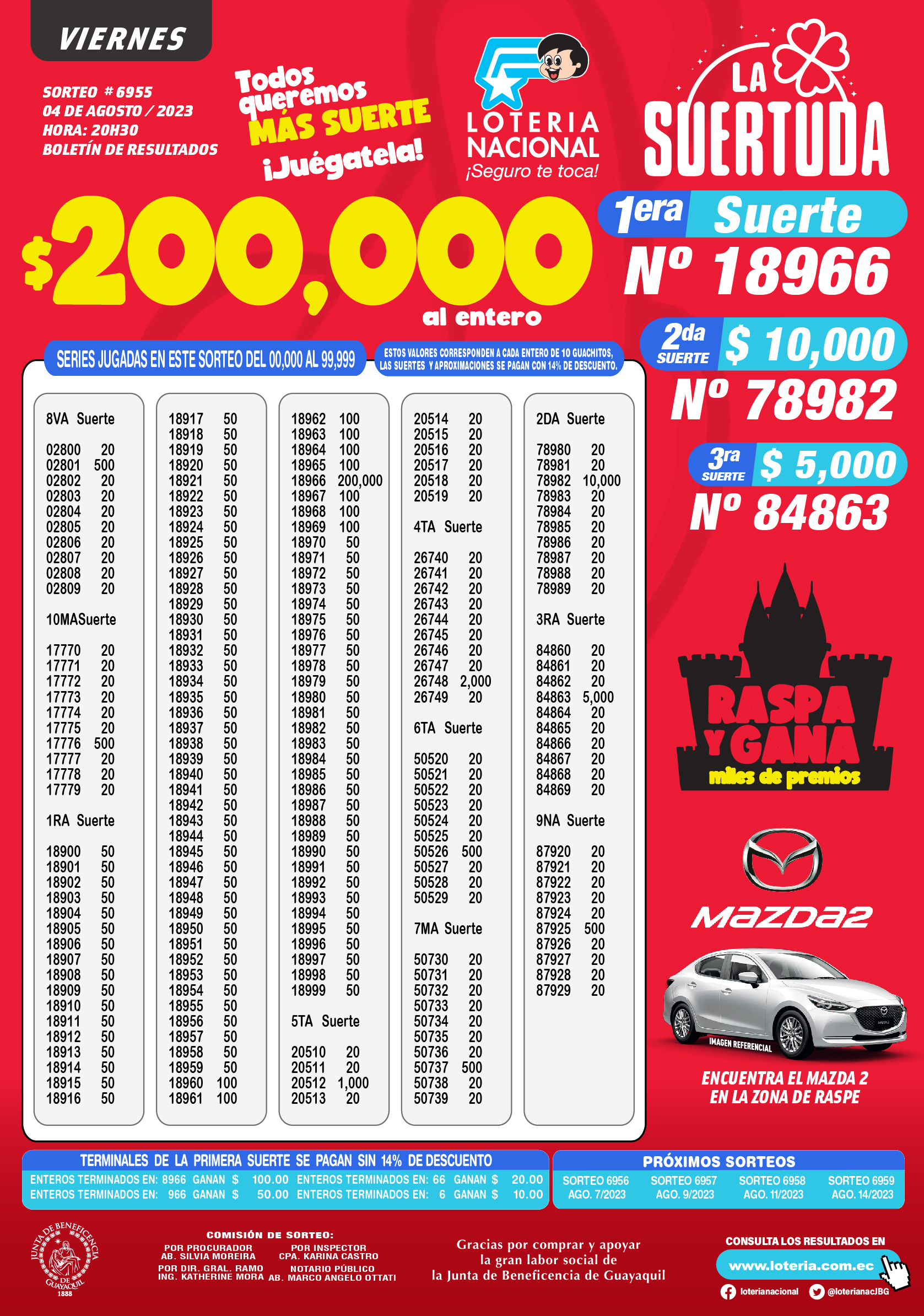 Resultados de Loteria Nacional 6955