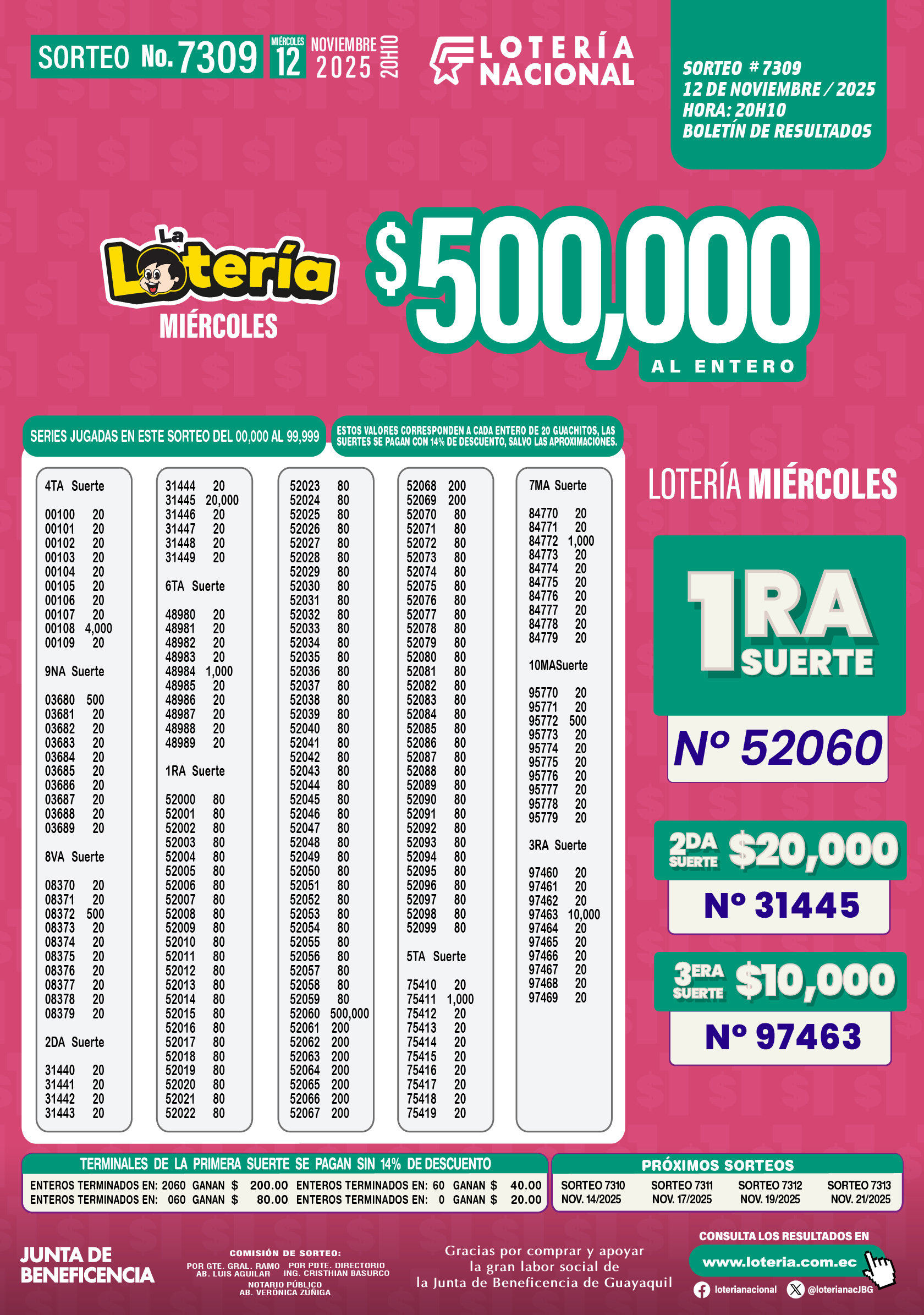 Resultados de Loteria Nacional 7309