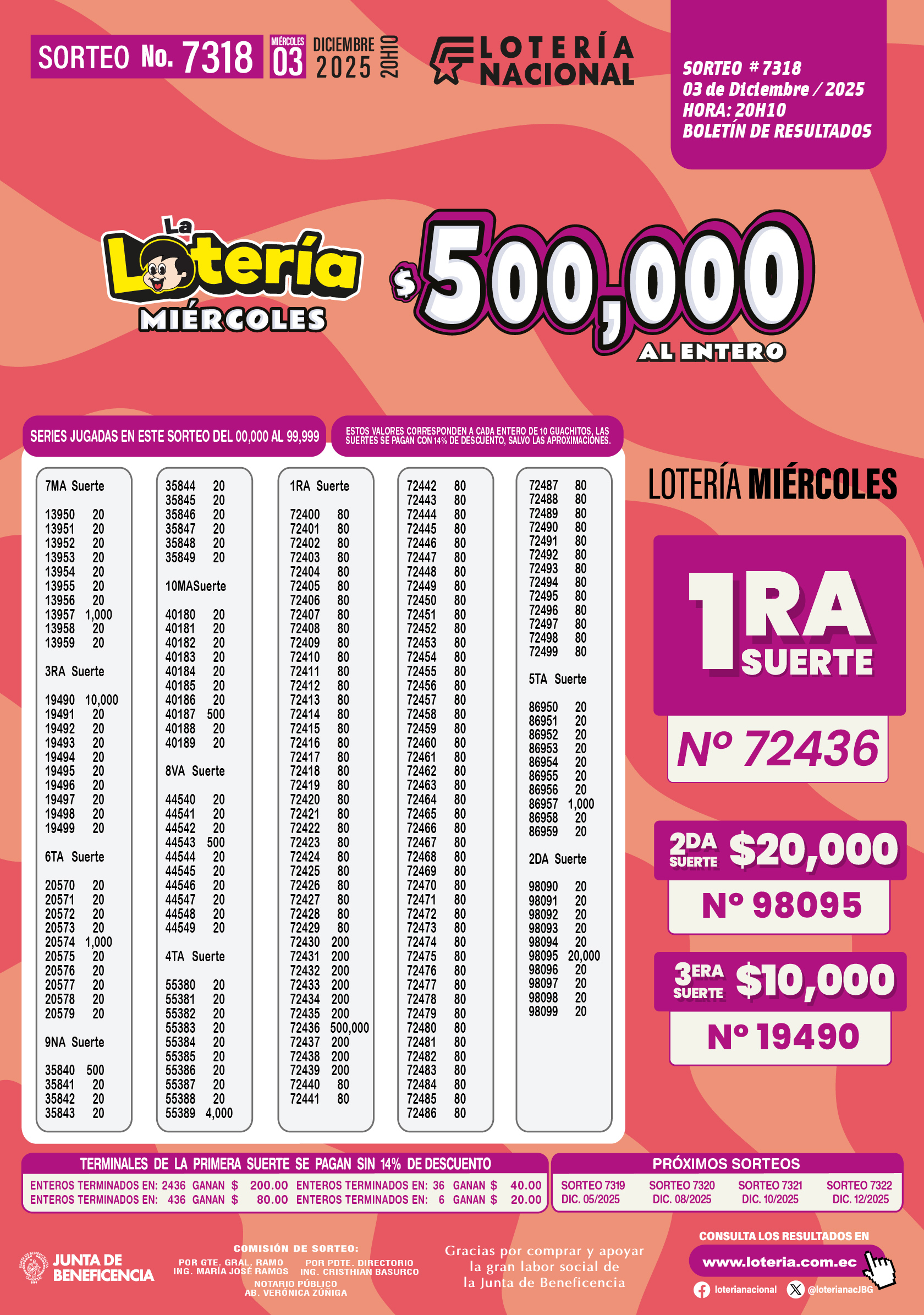 Resultados de Loteria Nacional 7318