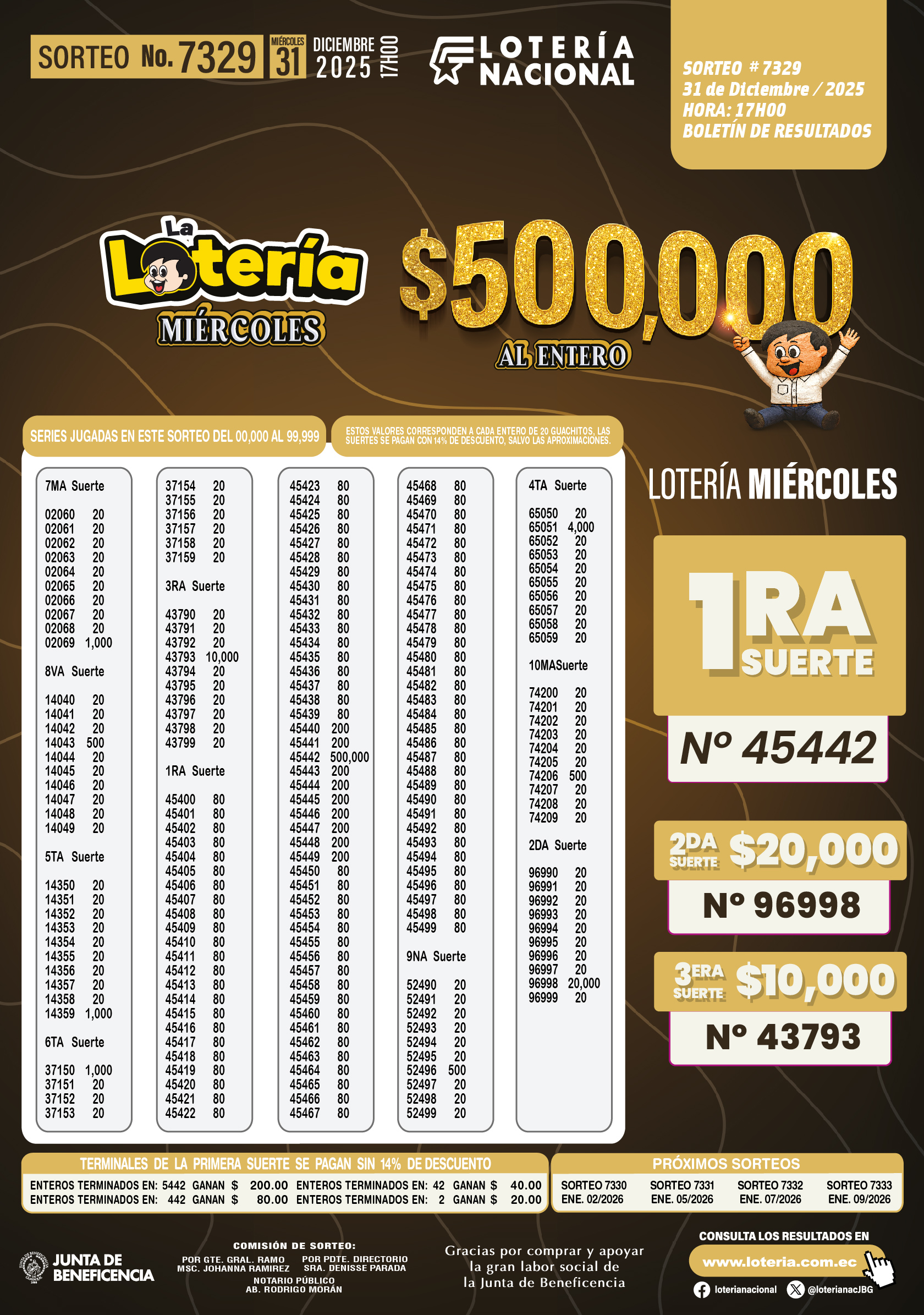 Resultados de Loteria Nacional 7329