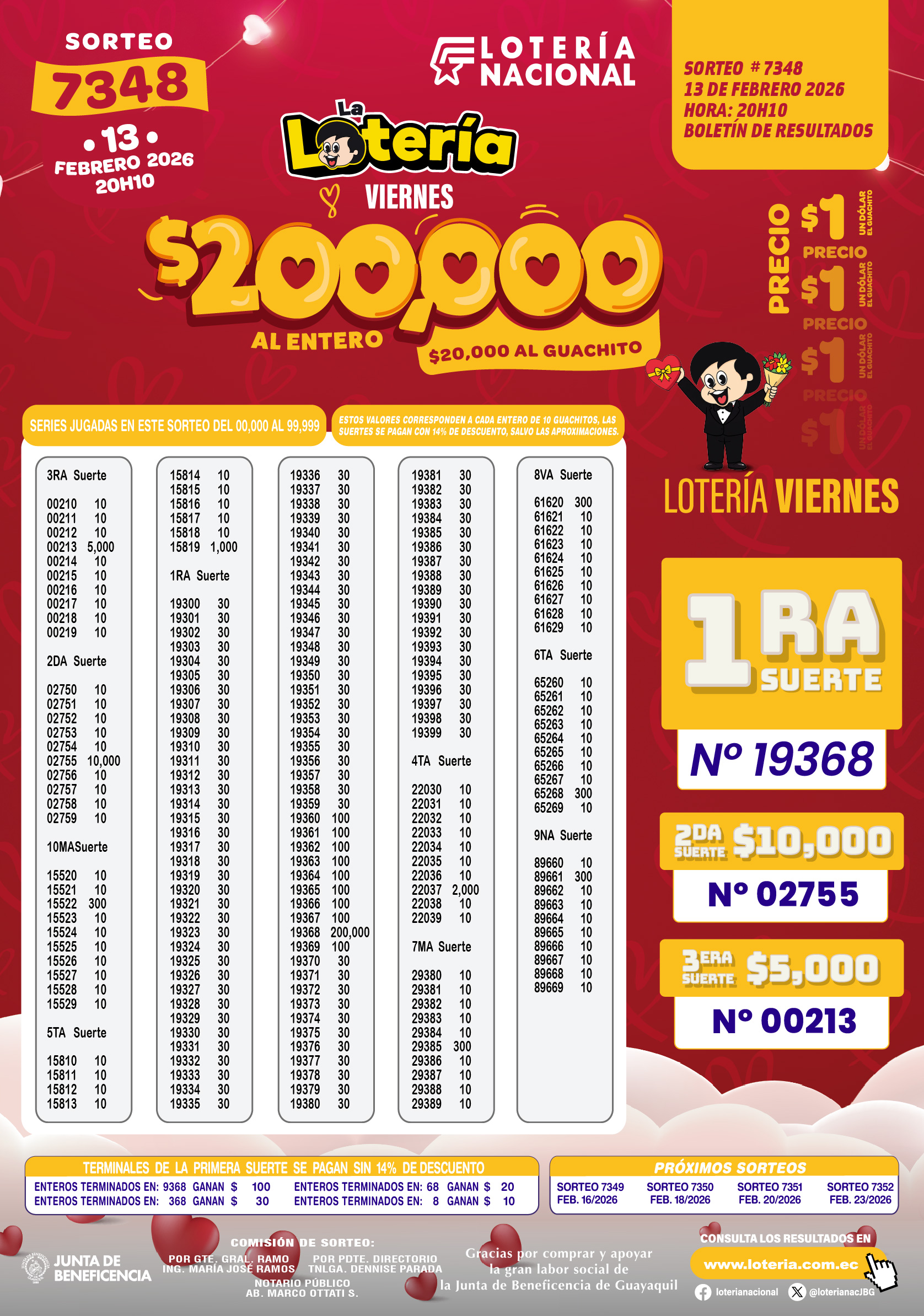 Loteria Nacional del 13/02/2026