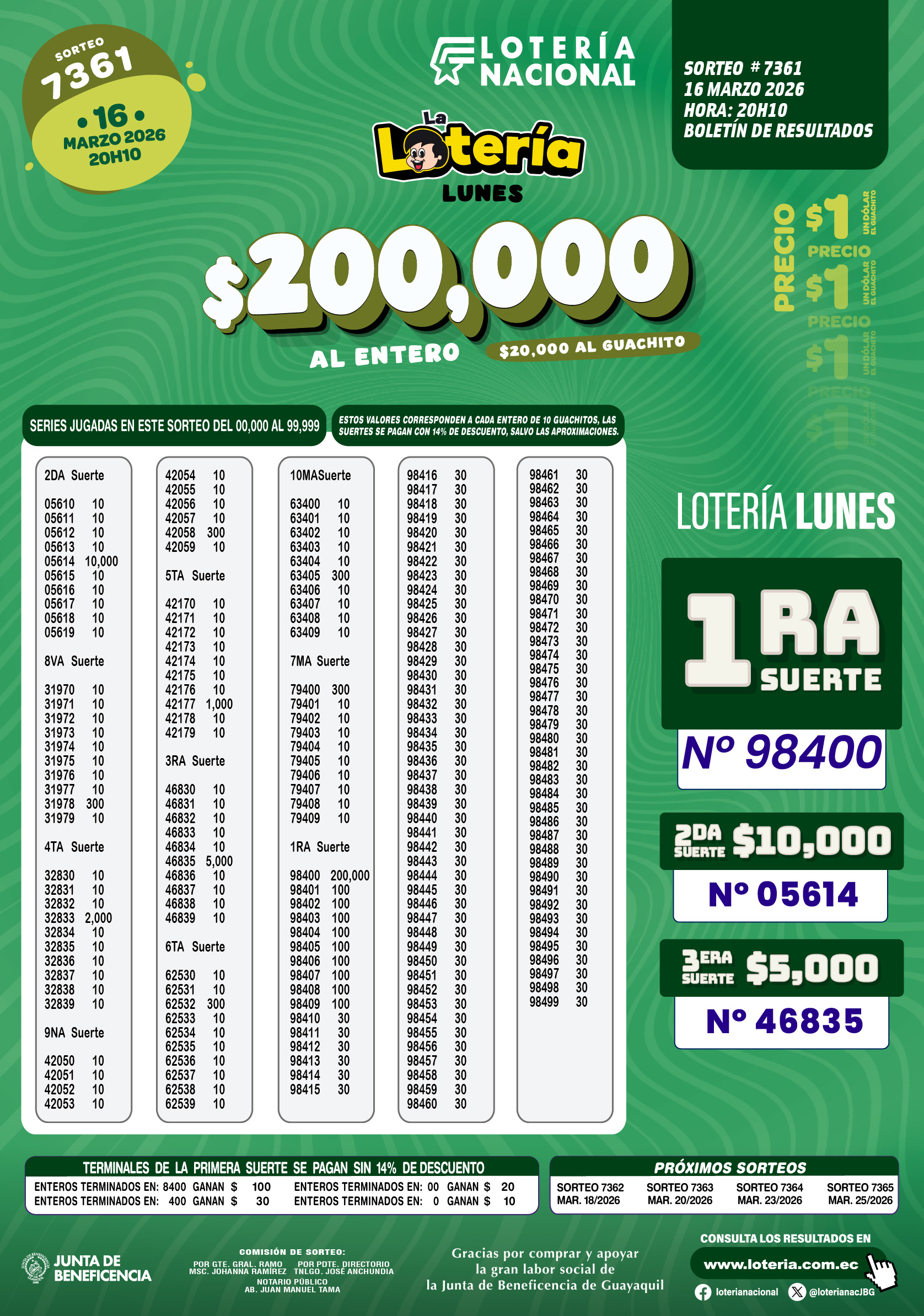 Resultados de Loteria Nacional 7361