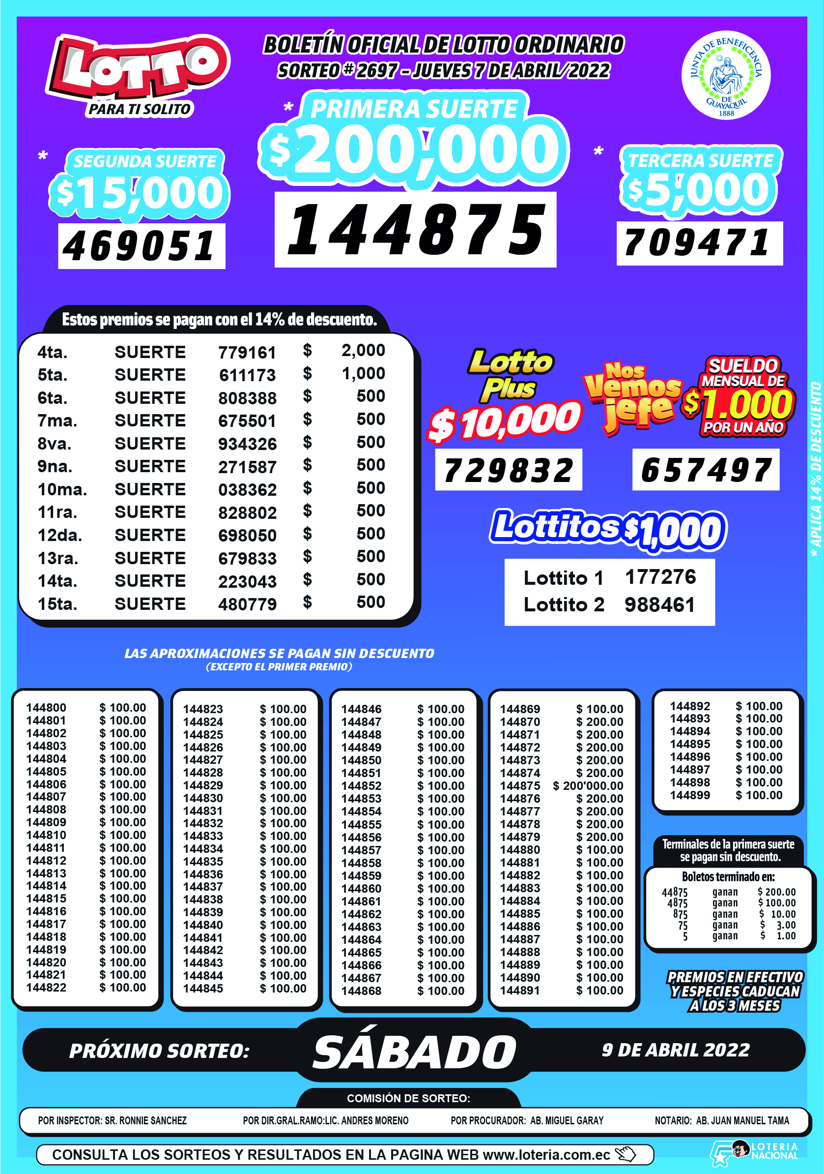 Resultados de Lotto 2697