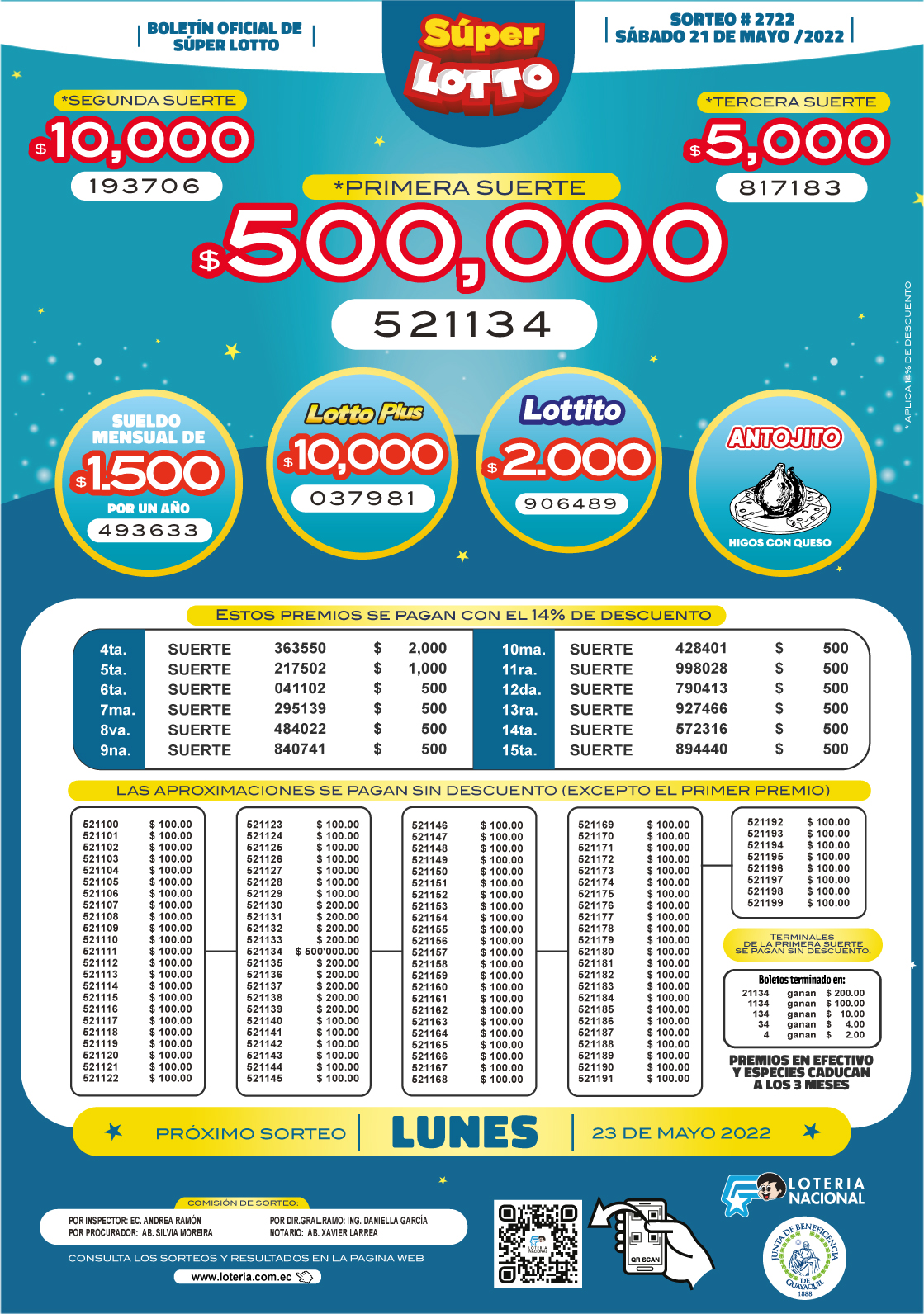 Resultados de Lotto 2722