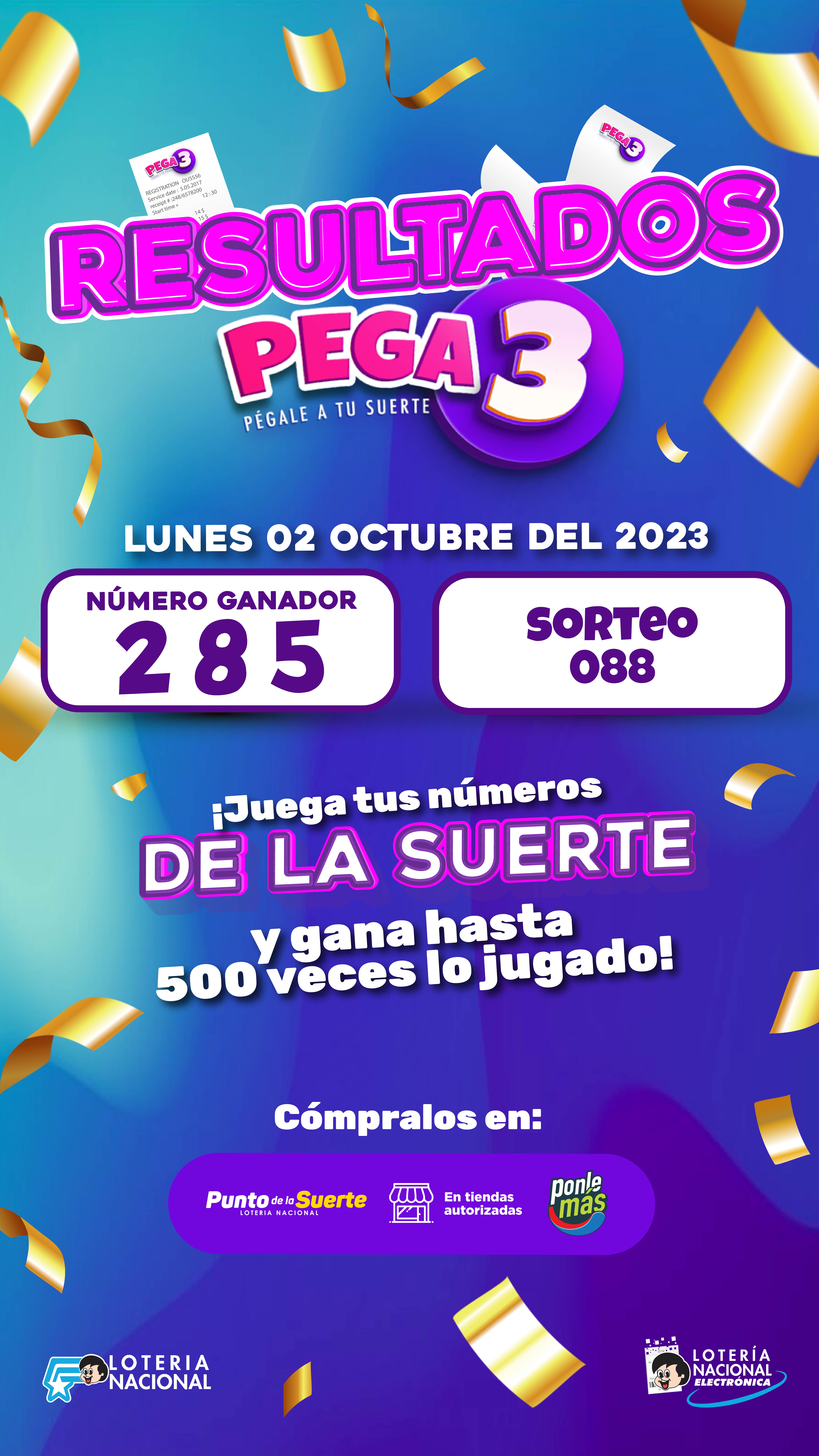 Resultados Pega3 del Lunes 2 de Octubre de 2023