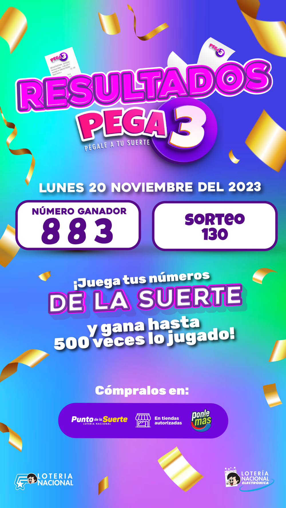 Resultados Pega3 del Lunes 20 de Noviembre de 2023