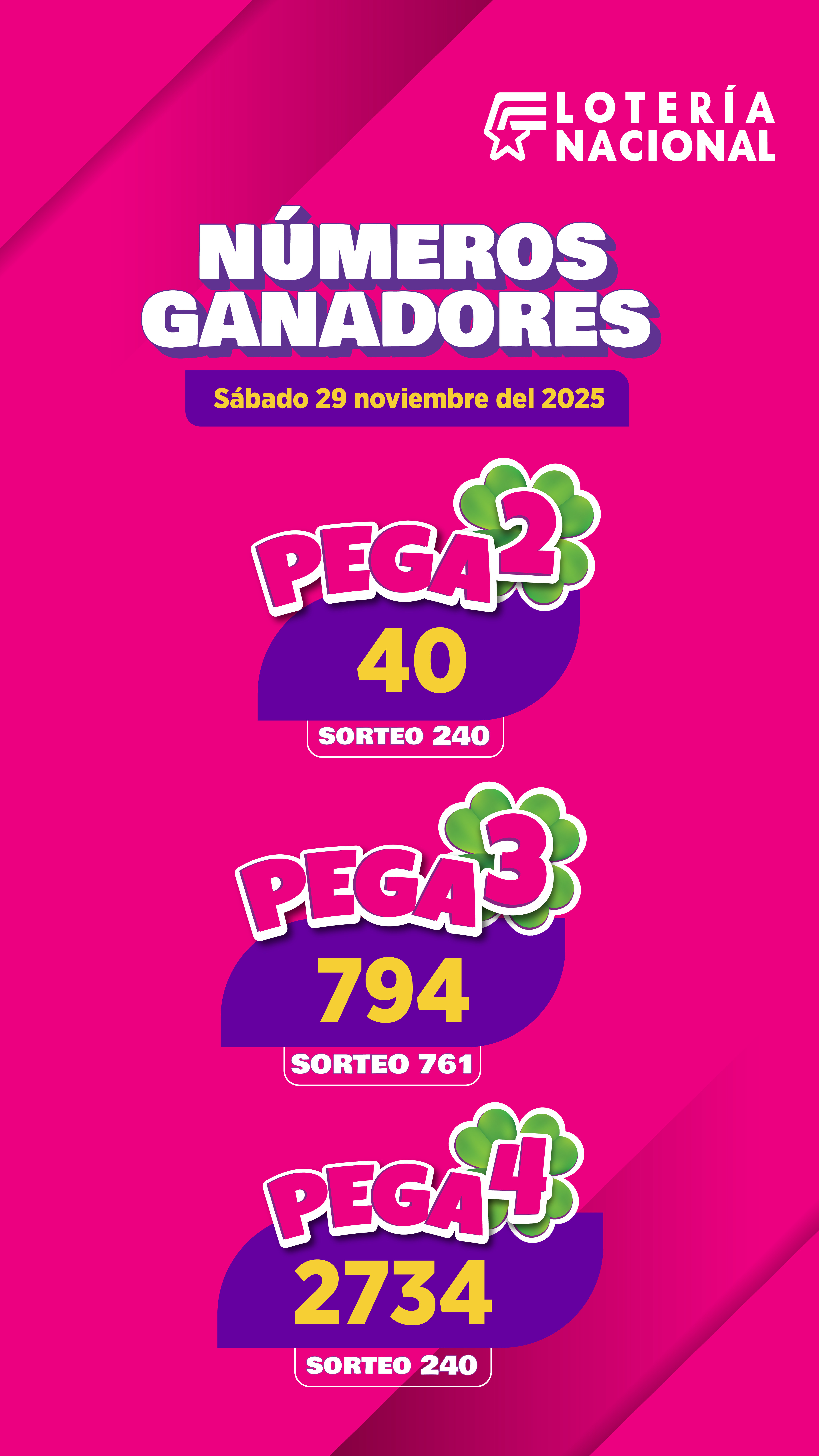 Resultados Pega3 del Sábado 29 de Noviembre de 2025