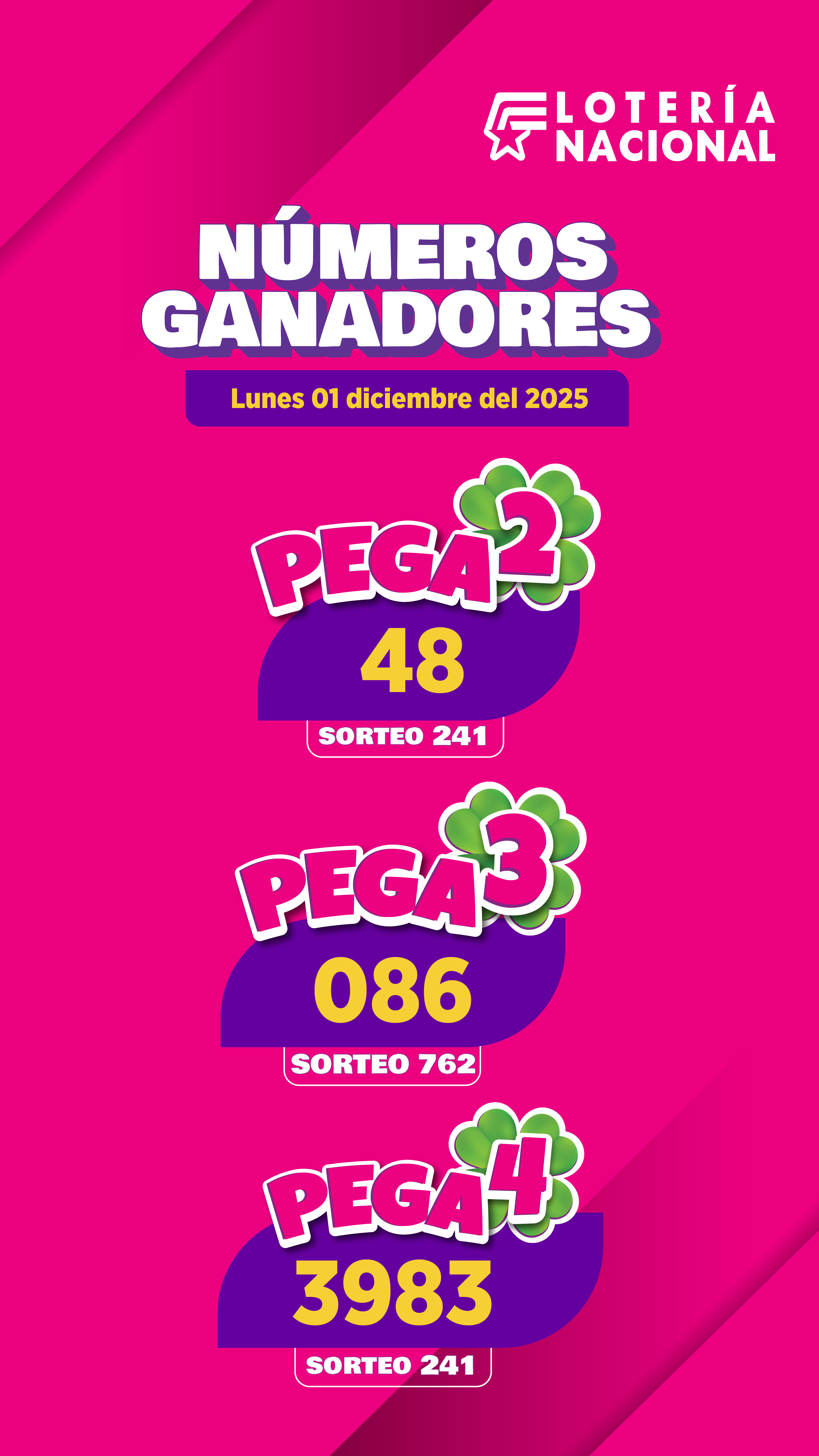 Resultados Pega3 del Lunes 1 de Diciembre de 2025