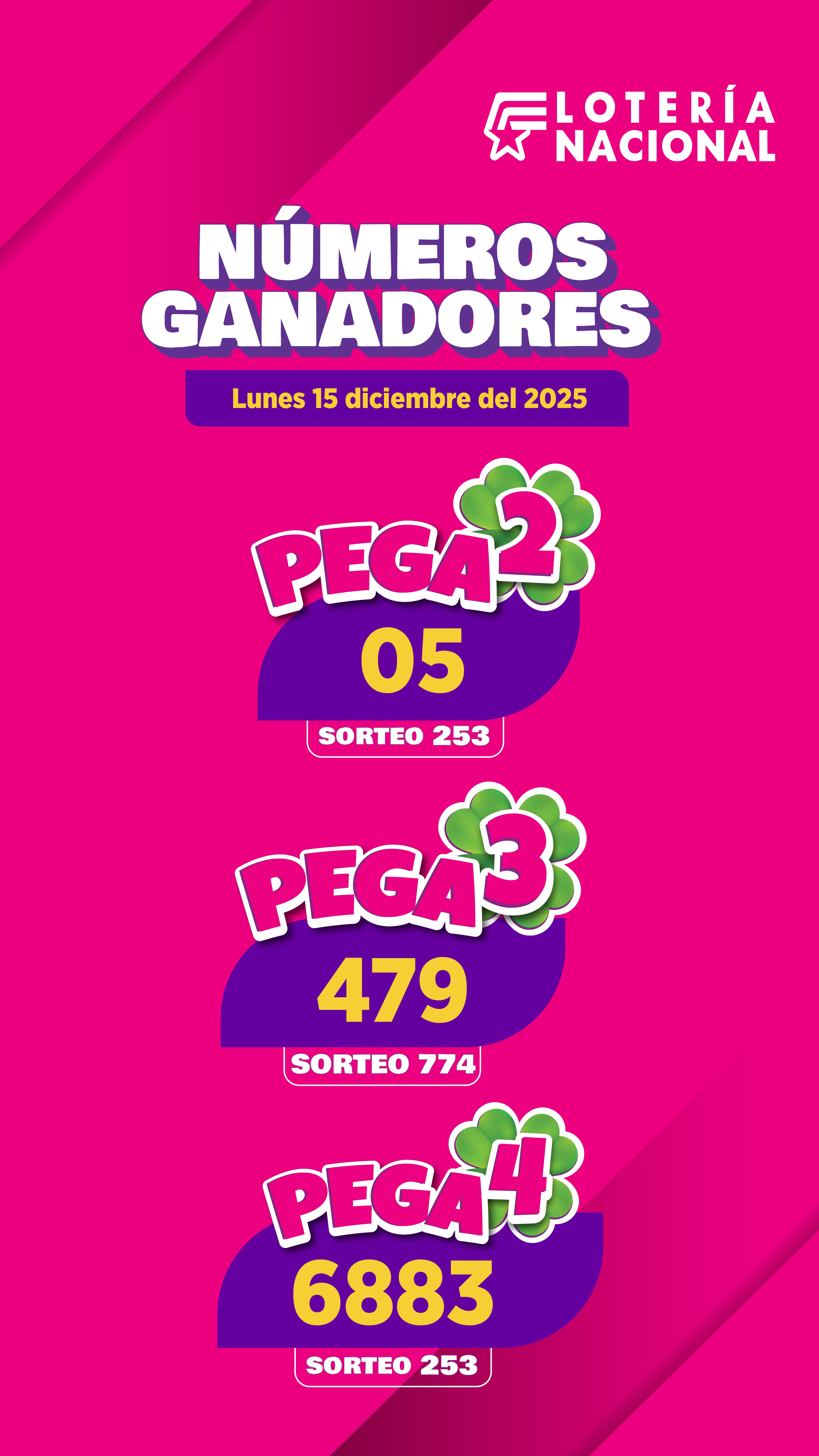 Resultados Pega3 del Lunes 15 de Diciembre de 2025
