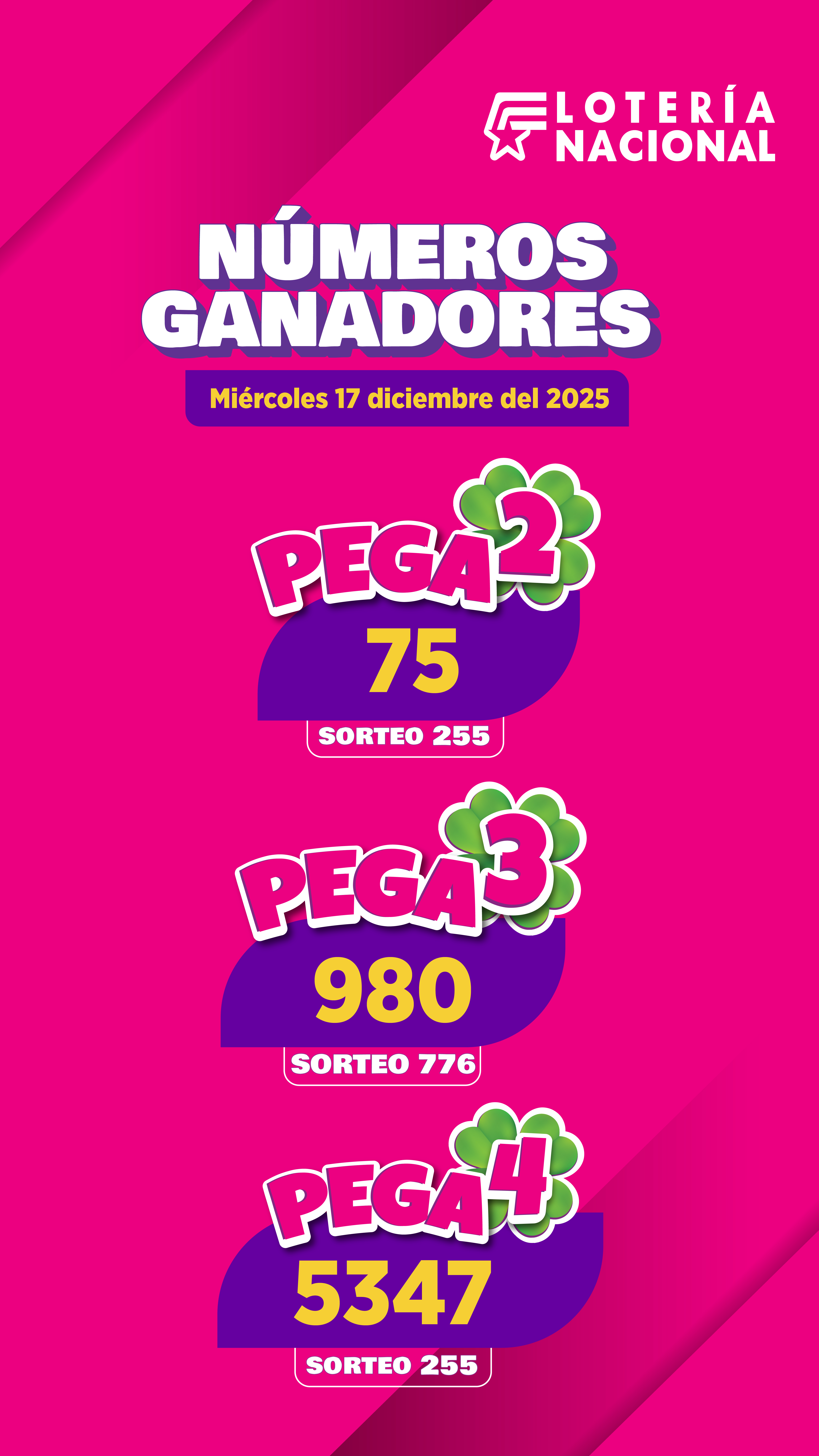 Resultados Pega3 del Miércoles 17 de Diciembre de 2025