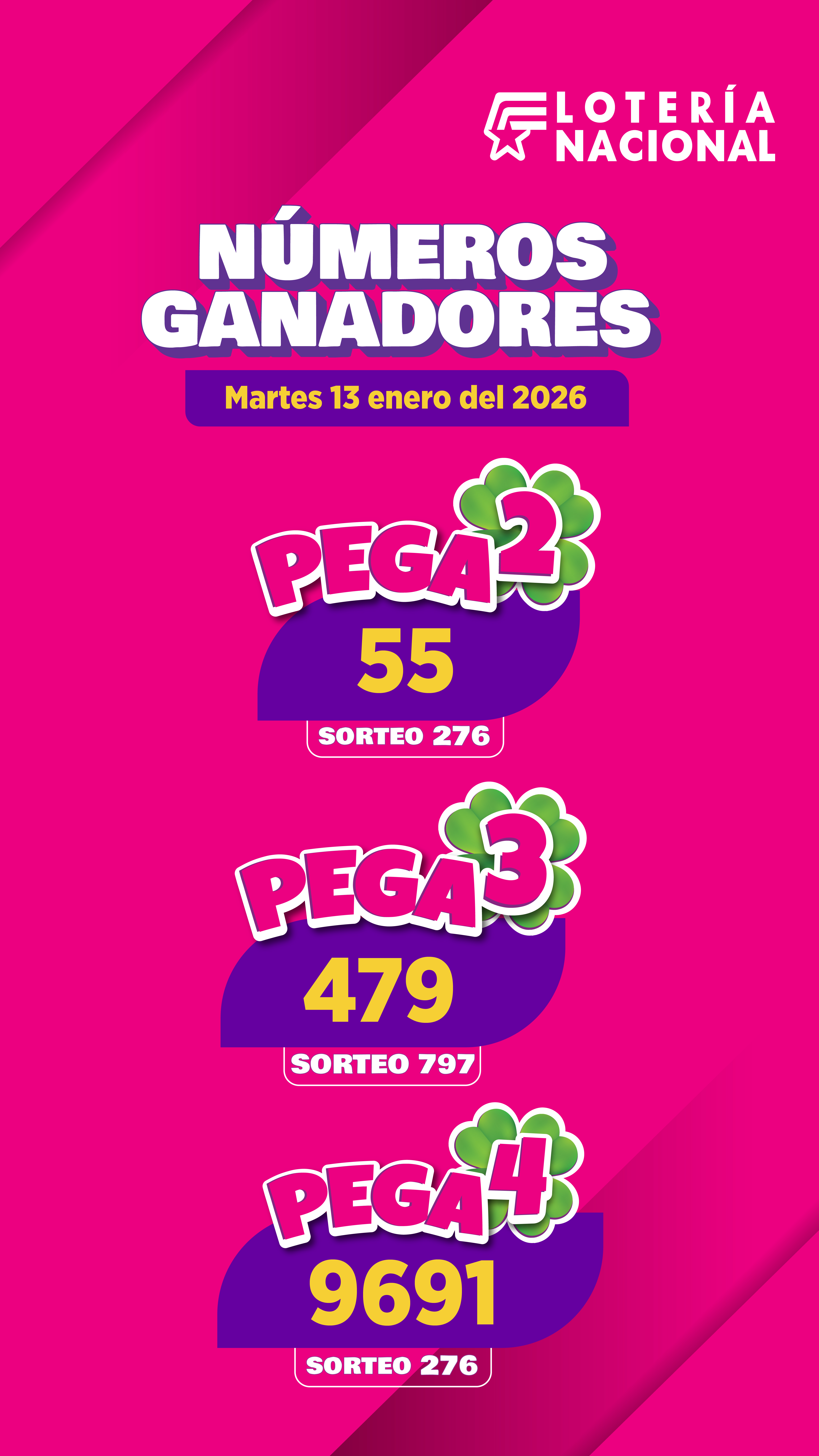 Resultados Pega3 del Martes 13 de Enero de 2026