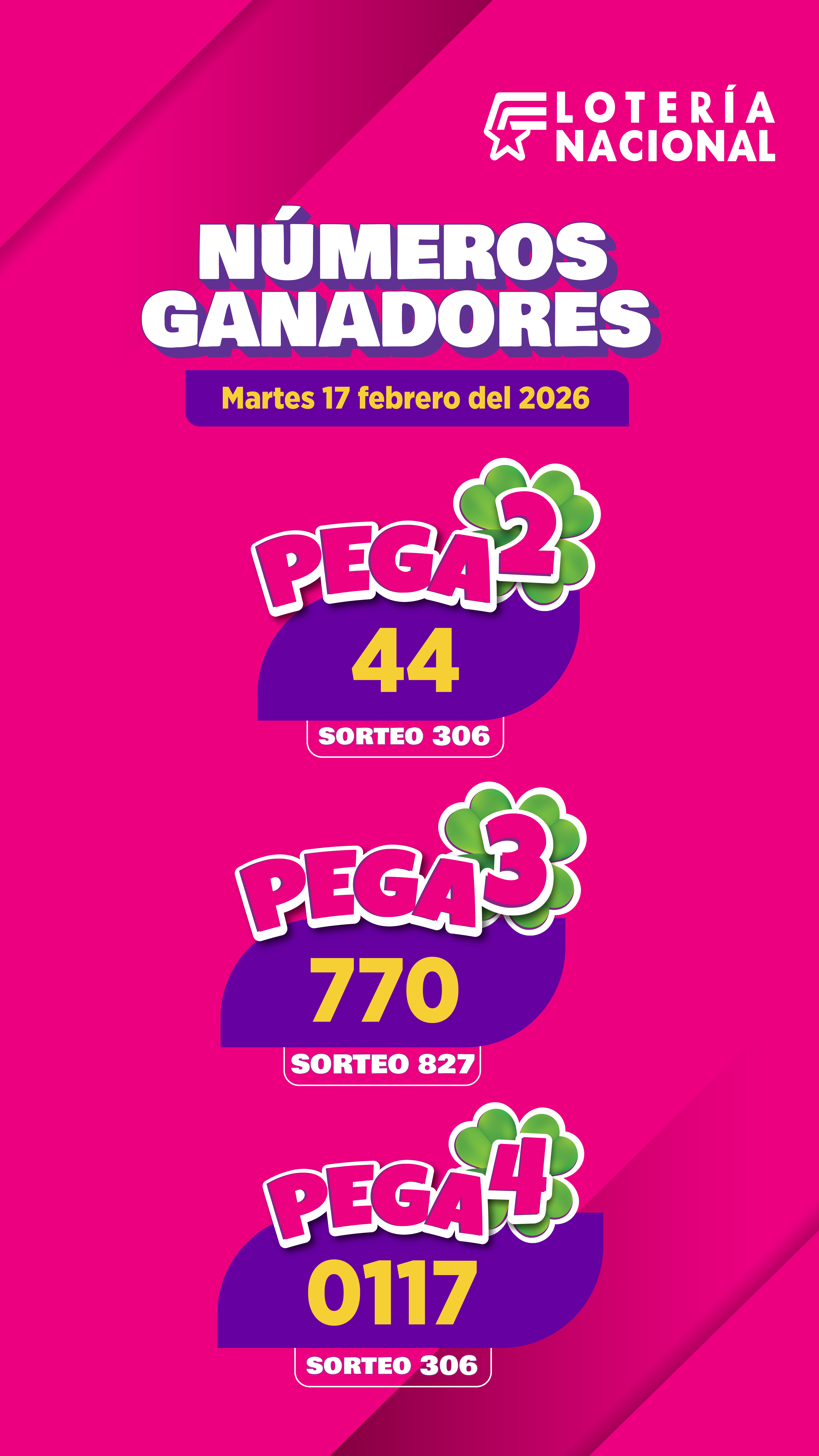 Resultados Pega3 del Martes 17 de Febrero de 2026