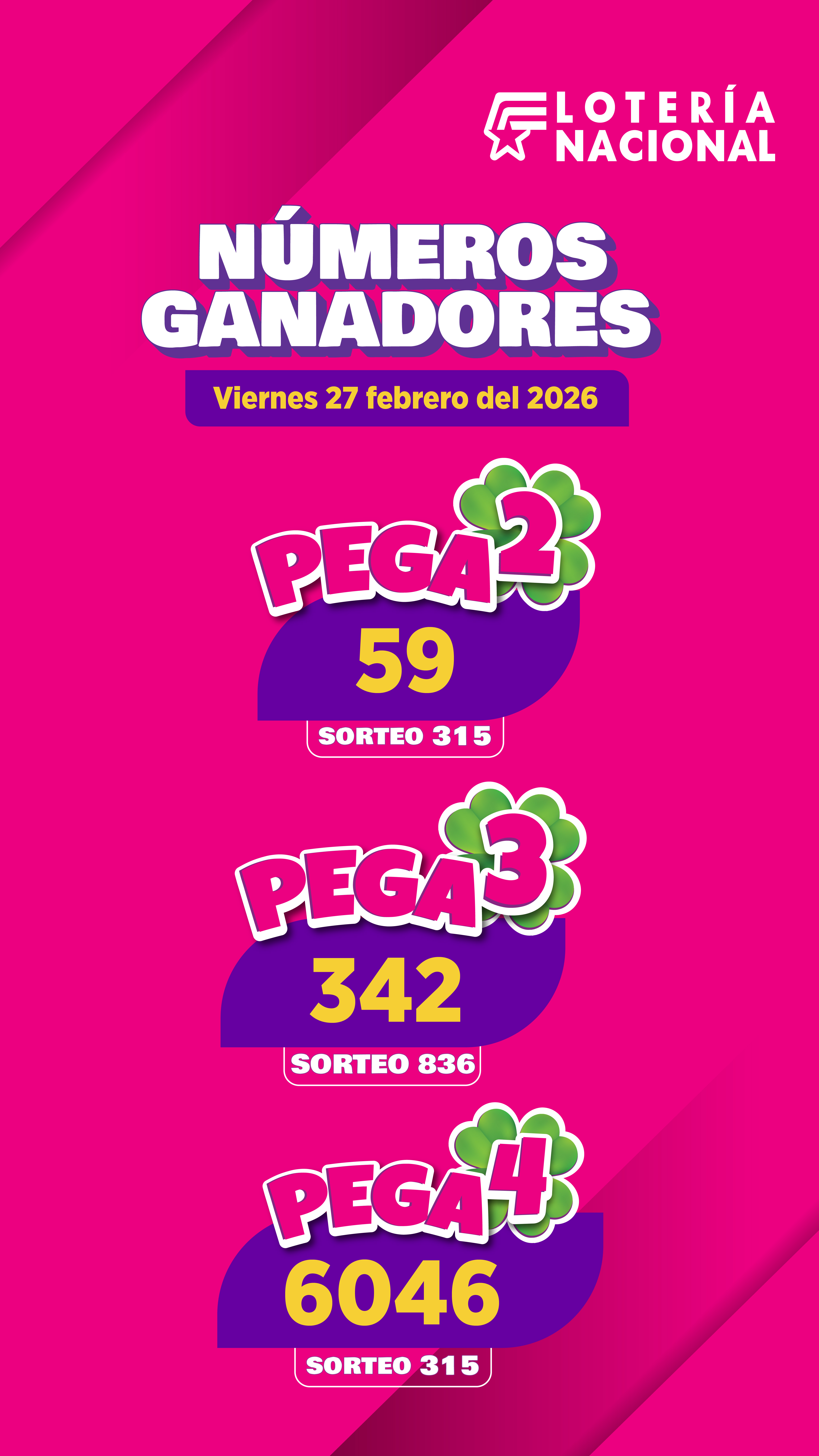 Resultados Pega3 del Viernes 27 de Febrero de 2026