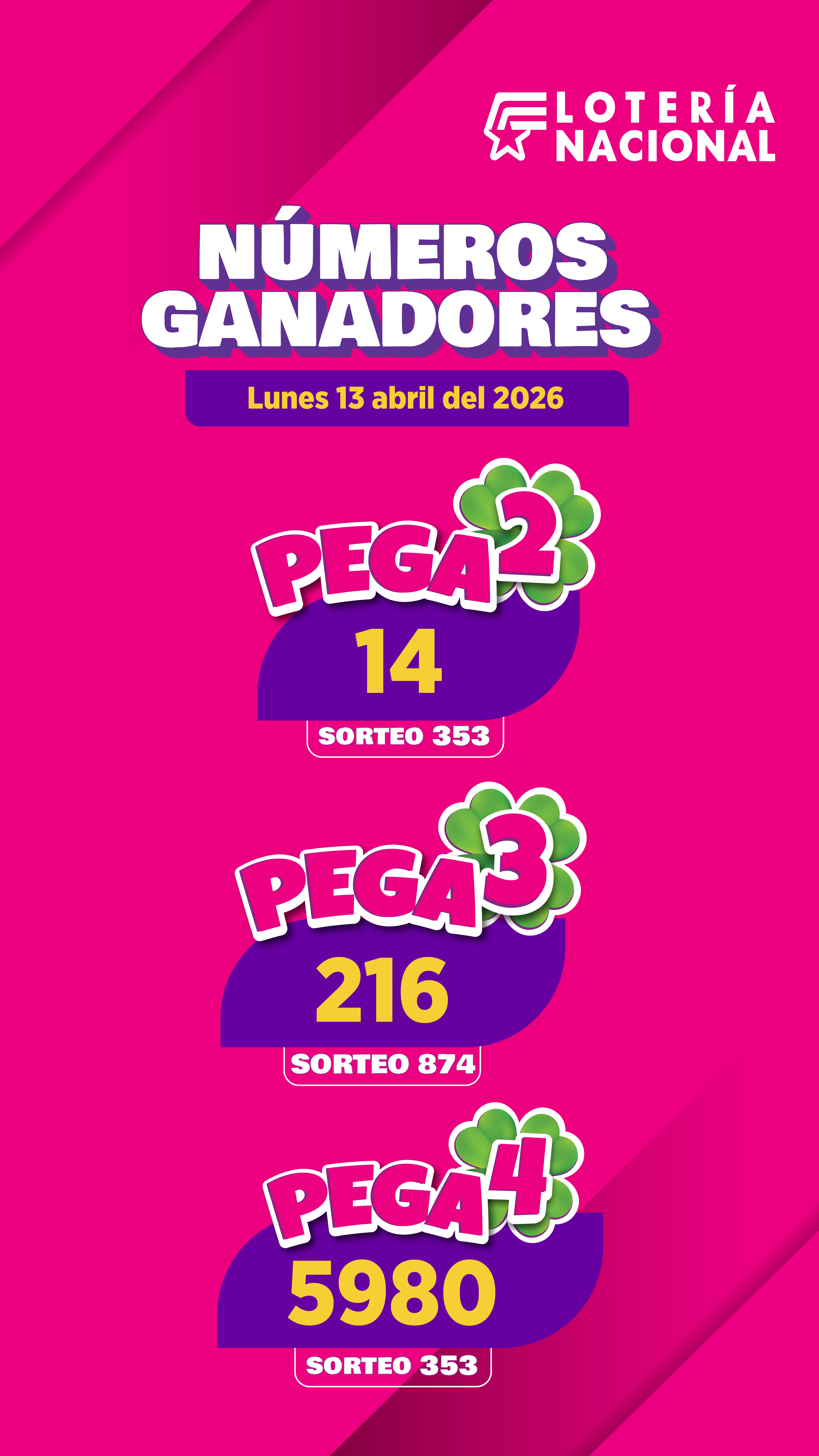 Resultados Pega3 del Lunes 13 de Abril de 2026
