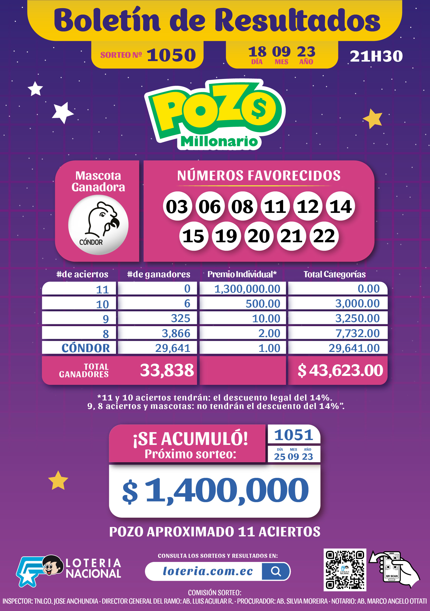 Resultado Pozo Millonario 18/09/2023