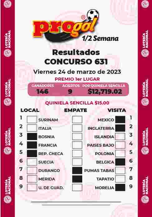 Pronósticos. Resultados Progol media Semana 630 del Jueves 16 de Marzo de 2023. Comprueba tu boleto del Progol media Semana.