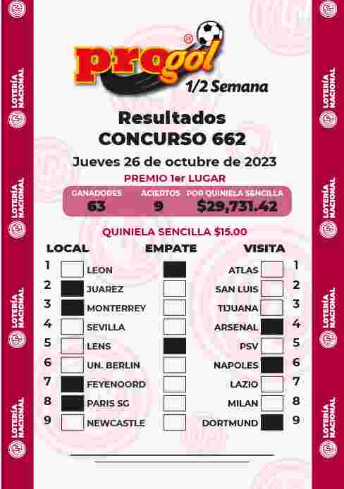Pronósticos. Resultados Progol media Semana 661 del Viernes 20 de Octubre de 2023. Comprueba tu boleto del Progol media Semana.