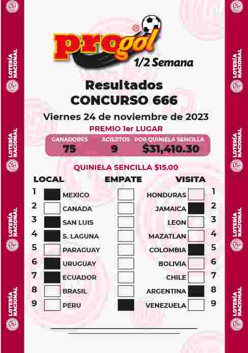 Jugada ganadora del Progol media Semana del Viernes 17 de Noviembre de 2023