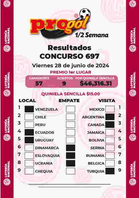 Resultados Progol media Semana 696 del Viernes 21 de Junio de 2024 - Resultados Lotería Pronósticos
