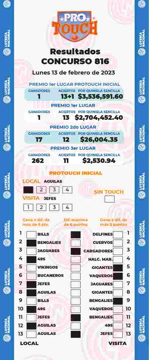 Jugada ganadora del Protouch del Martes 16 de Diciembre de 2025