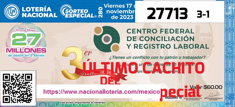 Cachito del último Sorteo Especial premiado en la Lotería Nacional del Viernes 17 de Noviembre de 2023