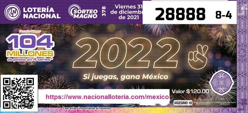 En el Salón de Sorteos de Sorteos de Loterías para la Asistencia Pública situado en el edificio "El Moro" en la Plaza de la Reforma 1 Col. Tabacalera 06037 Ciudad de México se ha celebrado el Sorteo Magno de Lotería Nacional del sábado, 31 de diciembre de 2022. Si llevas un cachito en este sorteo puedes comprobar la Lotería Nacional desde nuestra página www.nacionalloteria.com/mexico si has resultado ganador de algún premio, para elle basta que introduzcas tu número en el comprobador y pulses el botón comprobar lotería, también puedes descargarte nuestra app Resuloto y podrás escanear el código de barras de tu cachito y la aplicación automáticamente te informará del resultado.